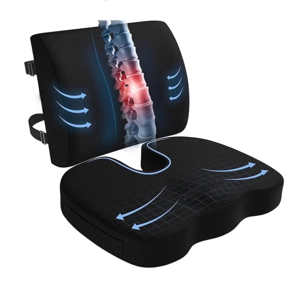 Lumbar Support Pillow Set, Memory Foam Car Seat Pillow and Orthopedic Back Pillow, Ergonomic Sitting Cushions with Washable Cover, Desk Pillow for Sciatica Pain Relief, Black, Memory Foam, by XNasso